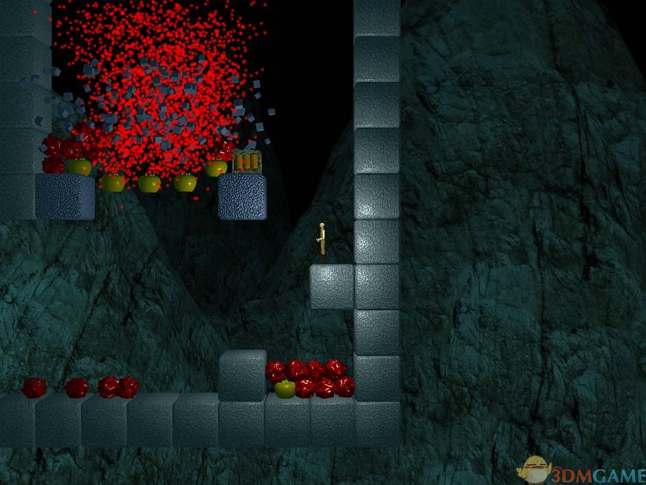 游戏的目标是收集所有的黄金,并到达出口,其中偏蓝色的砖块是可以炸的,炸弹的范围为两格,因此也还要离开炸弹的爆炸范围,游戏的难度还是有点高的,一定要仔细思考如何行动,否则你有可能会逼到被迫自杀哦。
