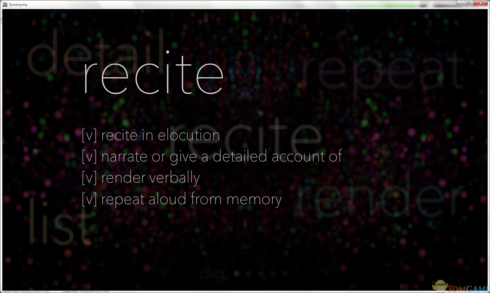 《同义词大挑战》是一款有助英文学习的解谜游戏,游戏中屏幕上会出现一个目标单词,玩家的任务就是在背景出现的其它的单词中点击与目标单词意思相近的单词,选择正确的话这一同义词会变成下一个目标单词,游戏也将这样不断延伸下去。当然,越到后面,背景单词数将越发眼花缭乱,还是相当有挑战性的。游戏中还提供单词的标准发音和详细释义,可以说是学习单词的得力助手。