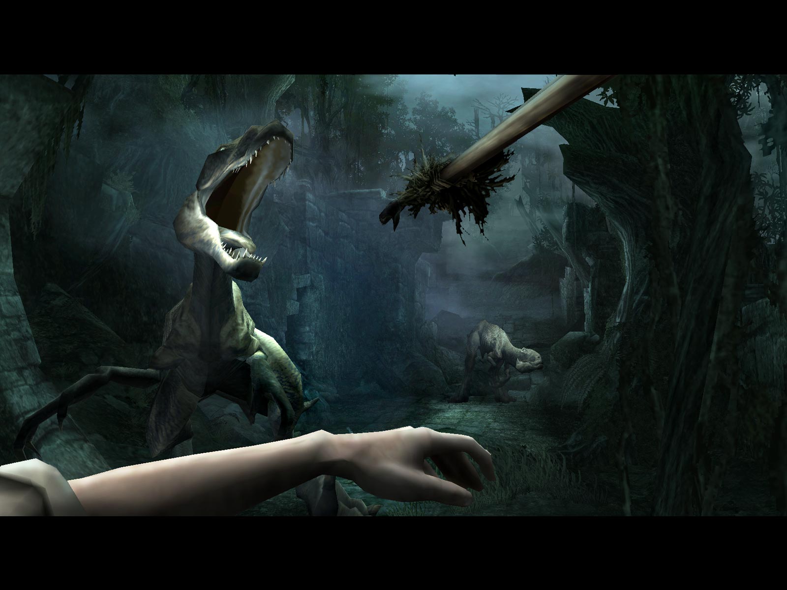有趣的是当玩家面对恐龙的疯狂追击几乎命在旦夕时,这时能拯救玩家性命的竟然是一只巨大的黑金刚,而这全身毛茸茸的巨无霸体型看起来跟霸王龙差不多,十几公尺高的身材看起来十分吓人,但也只有这么大块头的金刚才能抗衡霸王龙的攻击。不过金刚到底是敌是友?它为何要攻击恐龙?这些本该灭绝的恐龙从何而来?当金刚击退霸王龙后是不是会接着对人类开始不利?还是……这一切迷团将在游戏中慢慢揭开!