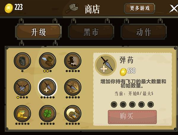 在商店界面中可以进行升级,包括你的武器、行动速度以及关卡进行的时间等。