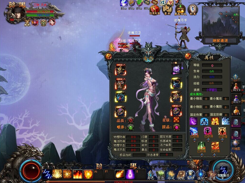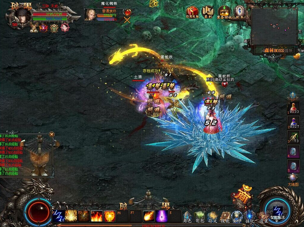 3.加入三个新技能 弓:万箭穿心 法:冰霜群雨 战:弧月斩