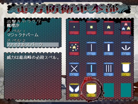 游戏待机画面时可以选择出击人物,以及该人物的装备。也就是Spell Card,分别对应Z键和X键。比如你可以将女仆长的普通飞刀设为SC1,再将时间静止设位SC2,那么就可以使用Z和X来分别放出这两个必杀技来攻击敌人。当然你也可以将SC1和SC2都设定为普攻或者SC,只要MP槽允许、统筹的过来就行。