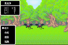 《勇者斗恶龙怪物篇:旅团之心》游戏画面,比起前两作来在战斗画面中增加了背景。再者说收集,虽然怪兽的种类是比较2代少了,不过转身的方法变的简单化了,除了最后的元素系的大部分和其他系少数几个怪兽以外,其他的怪兽都可以用简单的方法转到,没有什么苛刻的条件,收集难度大DOWN。在通关后的史莱姆岛上的迷宫利用各种宝玉组合,每次组合而成的迷宫的形态各不相同。虽然人类仲间的重要性有时候确实高于怪兽,让人有重本末倒置的感觉,不过说实在的,其丰富的特技,自由的搭配带来了更为丰富的玩法,还算是个成功的系统。