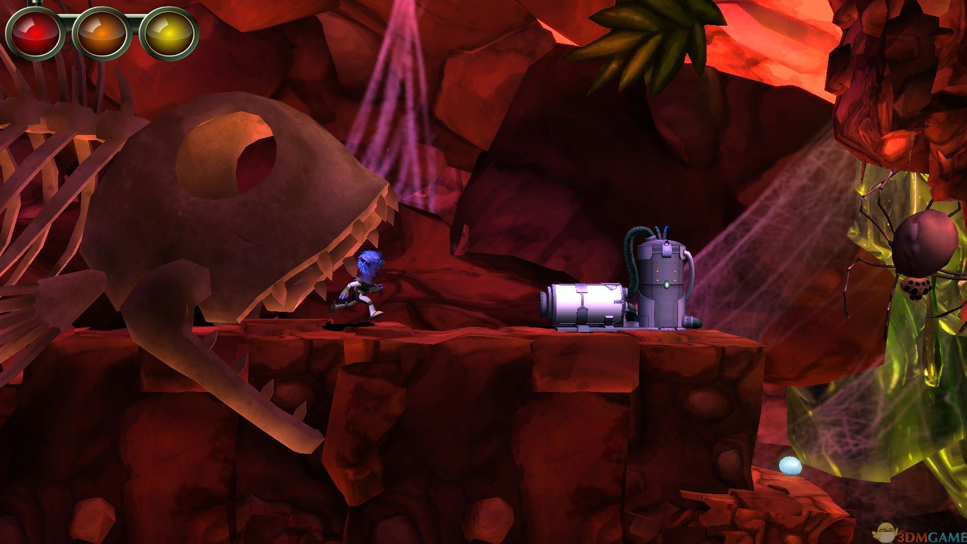 游戏中玩法比较丰富,紧密结合剧情,角色在一个微观的世界里探险,除了简单跳跃拍打苍蝇之外,还会有各种可怕的怪物等着ZAK呢,例如身手敏捷的蜘蛛、凶残的七星瓢虫、深藏不露的青蛙等。更让人刮目相看的是,游戏还有竞速玩法,ZAK带着火箭炮追打一只苍蝇,画面特效非常炫酷,丝毫不比赛车游戏体验差。