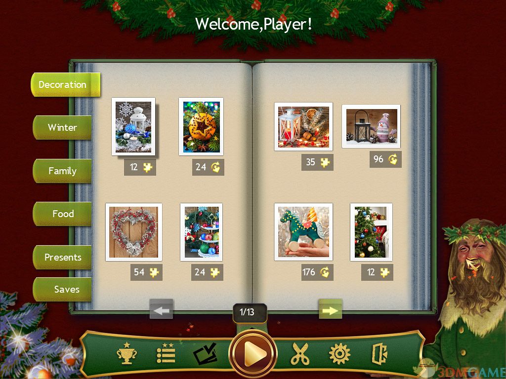 《假日拼图:圣诞节2》的玩法和前作相同,游戏中包含了5种不同类型的充满圣诞元素的图片,玩家进入某个类型下,无需解锁新图片,任意选择某个图片即可开始拼接任务。不同的图片所需组成的碎片数量并不相同,不喜欢挑战的玩家可以简单的任务开始做起,最低碎片数量为12个,最高为的为247,玩家可以自由选择。