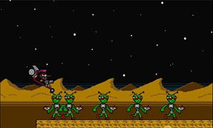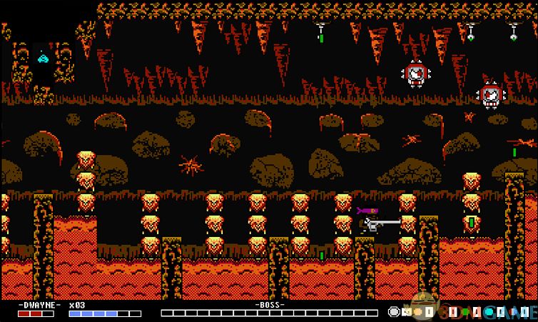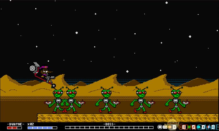 和一般的动作闯关游戏类似,在本作中也是通过控制人物克服各种陷进机关,用手中的武器击败一路上的小怪和最终的大BOSS,最终拯救整个世界。不过稍有不同的是,游戏中在进行完第一个关卡后,玩家可以自行选择关卡进行挑战,不必一关接着一关挑战。游戏中每个关卡人物都有3条生命,除了大刀外,任何枪炮类武器都是有弹药限制的,需要合理使用。