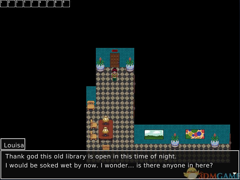 游戏的操作方式和同类型的作品类似,使用方向键可以控制角色移动,按下X键可以和物品以及人物进行互动或对话,当玩家收集到物品时,会存储在左上方的物品栏内,玩家可通过按下快捷键1-9来使用这些物品。游戏场景发生在图书馆内,房间较多,玩家可以不断探索,同时和物品互动时玩家要活用物品栏内的工具。