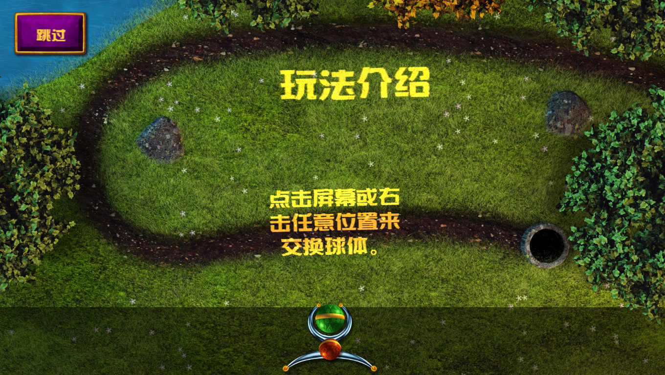 游戏的主角是一只石青蛙,石青蛙会吐出各种颜色的珠子,珠子造型美丽,色彩鲜艳,环绕着石青蛙的是承载珠子的轨道,各种颜色的珠子沿着轨道往前滑动,石青蛙必需遏止珠子滚进轨道终点的洞穴。石青蛙吐出的珠子与轨道上的珠子相结合,颜色相同即可消失得分,当轨道上的所有珠子被消除干净时即取得游戏的胜利。