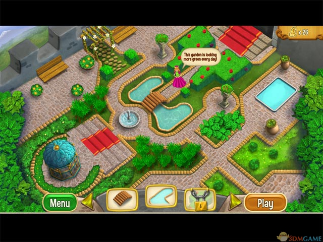 游戏的玩法非常简单,和其他消除游戏类似,关卡中玩家只需要将三种相同的物品连成一线即可实现消除效果。不过每个关卡中玩家都应当有目的性的去消除,每个关卡的的界面左侧上方都会目标任务,比如让玩家收集多少个修枝剪,多少朵花等等。消除时如果卡关,玩家可以使用右上角的重置按钮,点击按钮之后所有物品将会重新排列,玩家再寻找连接物品时会变得容易许多。游戏还为玩家设置了辅助道具,即左下方的Power UPs,收集指定的物品将可以激活特殊道具,如收集到六十个胡萝卜,将可以召唤小松鼠来帮忙。