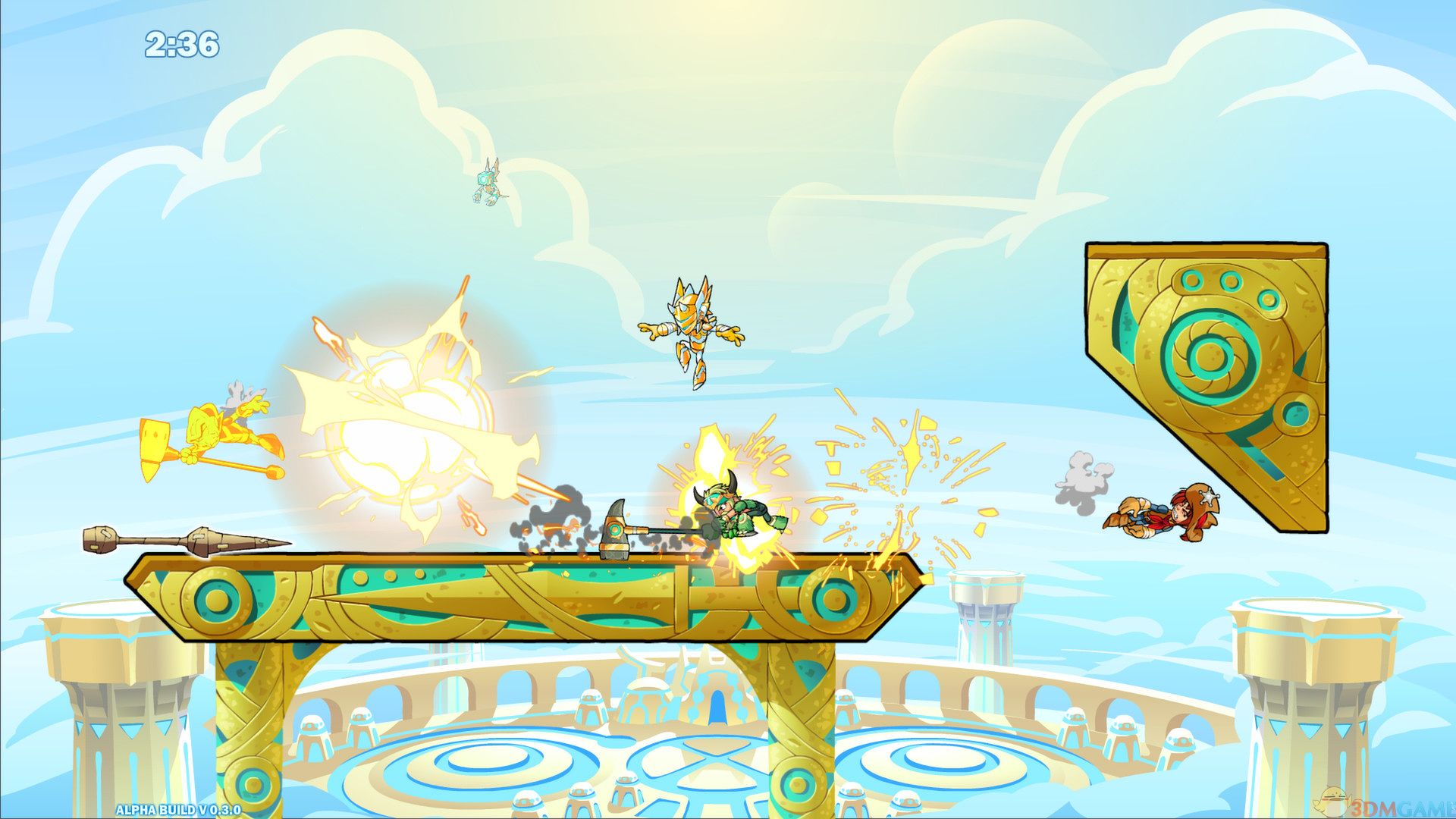 游戏开始,玩家可以自己选择自己心仪的格斗选手以及竞技场来进行格斗,最多可4人同时进入。进入竞技场后会随机掉落装备,这是你就可以拿上武器去战斗了。是的,没错,这就是一场大乱斗。
