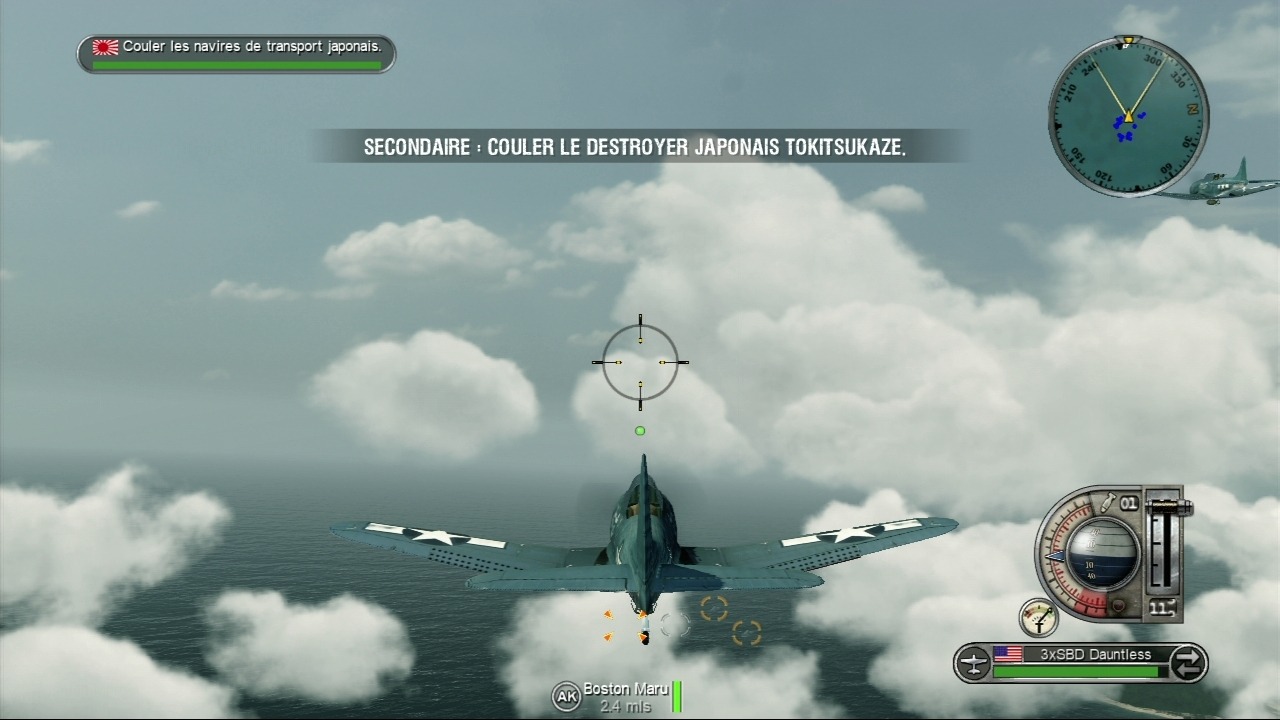 飞机操作——shift次要武器使用(炸弹要保持水平飞行才会有瞄准星) 次要武器为鱼雷时注意低飞水平飞行 瞄准器里的黄线对齐鱼雷才有效。