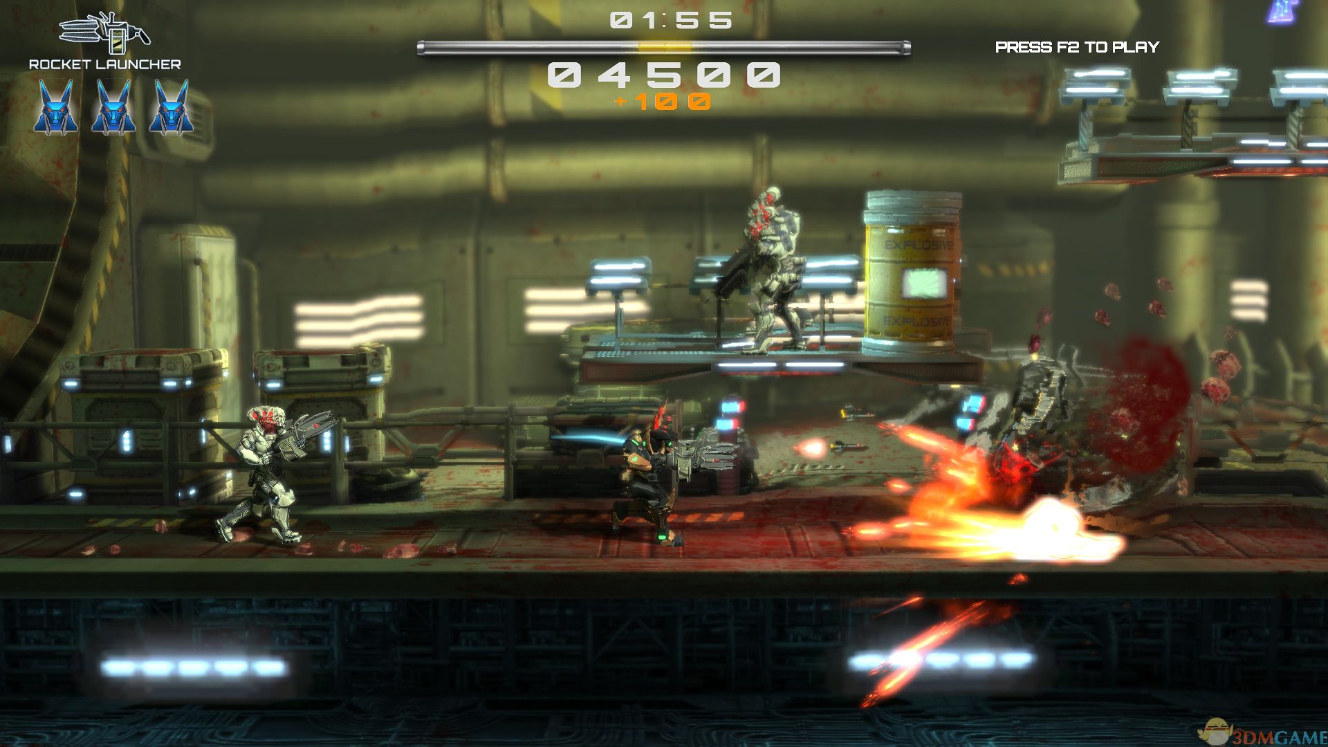 1、经典的横版射击元素,跳台、炮塔一应俱全。向先辈致敬不只是说说!