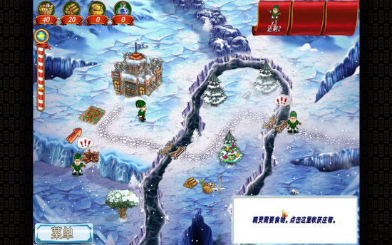 游戏和前作玩法类似,故事背景和画面风格变了。关卡有不同的目标要实现,你要收集资源,建造建筑,增加工人,用最高的效率完成目标。在游戏中除收集和建筑之外,还要施展强大的魔法通关任务,并帮助圣诞老人完成相应的任务。