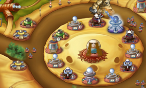 血球塔:主要的攻击塔,有两种路线,一个是低攻高速路线,可以变成三发塔,一个是高攻低速路线,可以变成超即攻击塔。