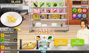 玩家按照自己的方式进行烹饪,你将通过30个回合的快速火拼,和15轮淘汰挑战赛。你有从数以百计的原料中组合味道的权利,但需要竭尽全力去获得优胜,否则成绩最差的的厨师将被无情的请出比赛。