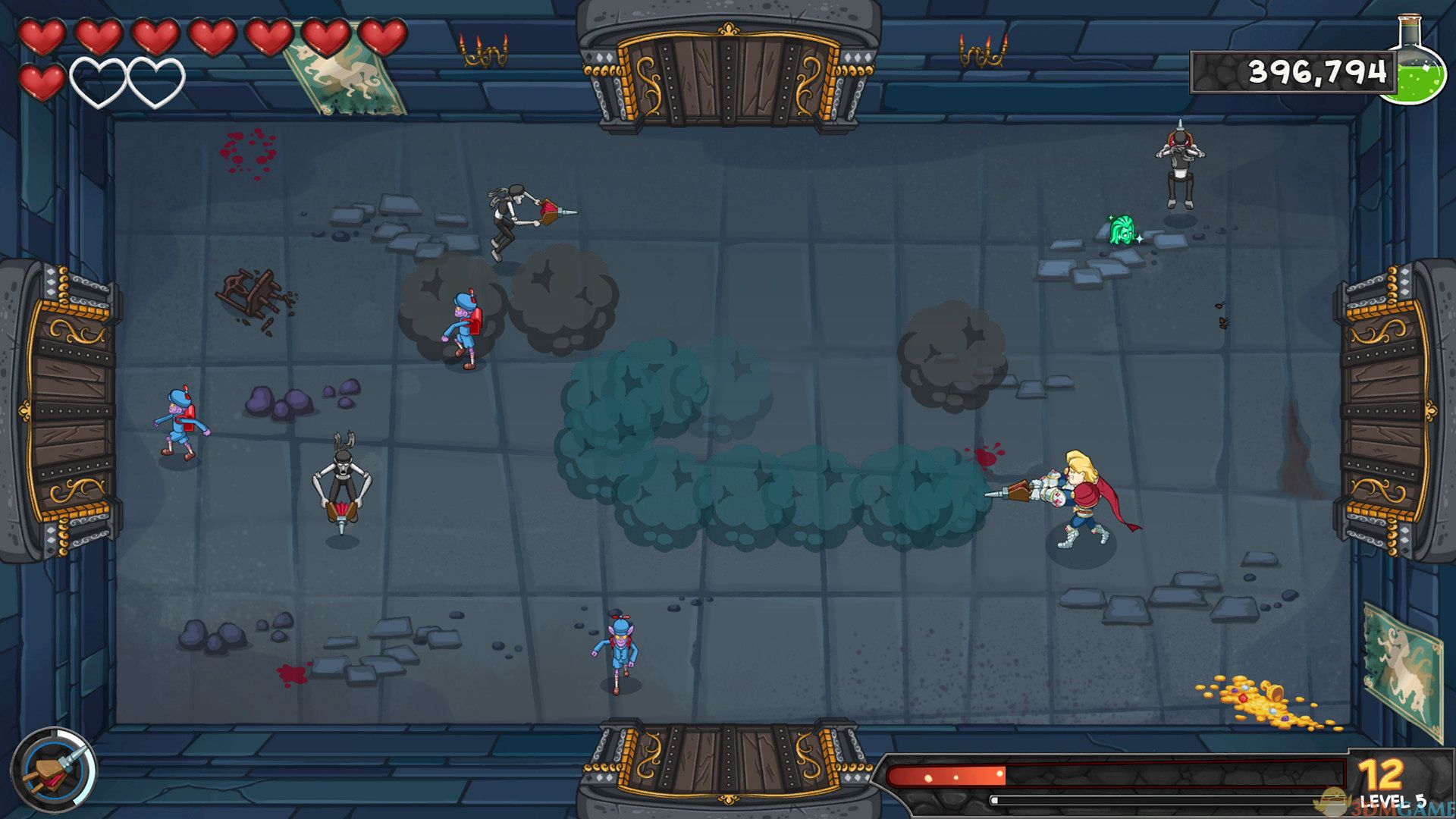 《武器设计师》是一款快节奏的俯视角地牢冒险游戏,也就是常见的“Roguelike”。游戏中你需要使用拳头或者缴获的武器战斗,由于这些武器耐久很低,你需要经常更换武器。在小镇里你可以购买各种升级项目,提升自己的攻击力,不过即使这样主角还是非常容易死亡。