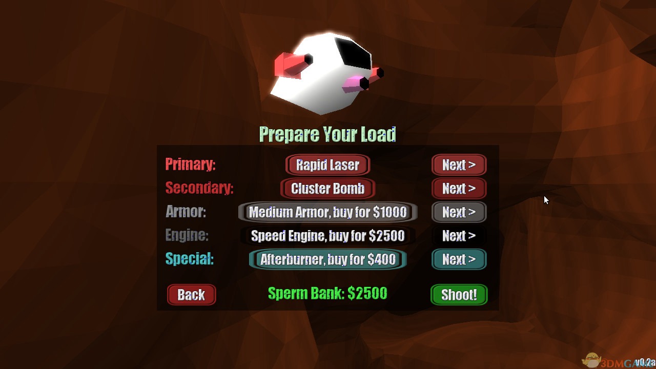 《精子竞速(Spermination)》是Phr00t's Software制作发行的一款竞速射击类游戏。游戏中玩家就将控制一个精子,在险恶的环境中一路突进,你目标就是到达最终的目的地,实现成功受孕的任务。