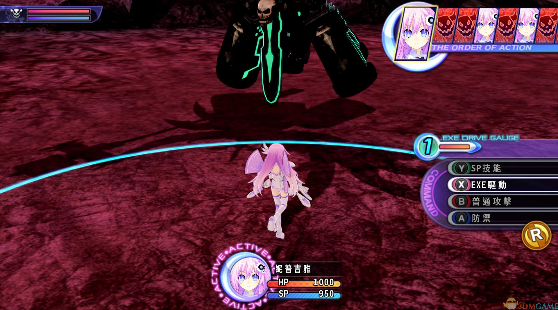 游戏采用回合制战斗玩法,敌我双方会在回合命令轮候表中依次行动。玩家可以操控角色执行SP技能、EXE drive、普通攻击、防守和随机选择等操作。每个角色都有自己的血量槽(HP)和技能槽(SP),合理运用角色的技能和攻击方式,是战胜敌人的关键。