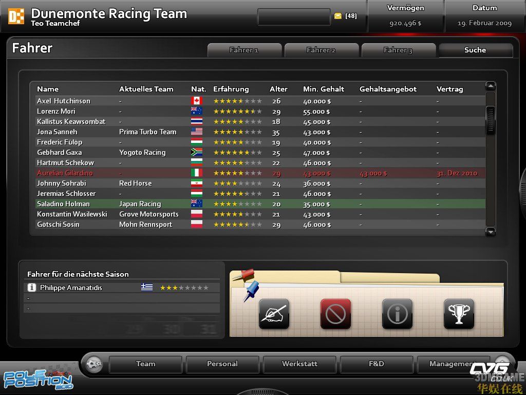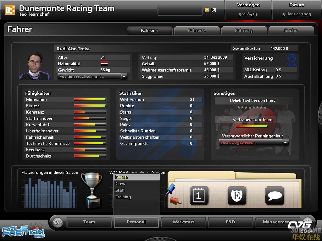 《顶尖车手2010(Pole Position 2010)》是由Kalypso制作和发行的一款模拟经营类游戏,游戏将考验玩家的战术思想和对车队的管理技术能力,你需要带领自己的车队赢得胜利,要注意培养车手、训练车手规划好车队,并分析他们的实时赛事,及时作出调整。
