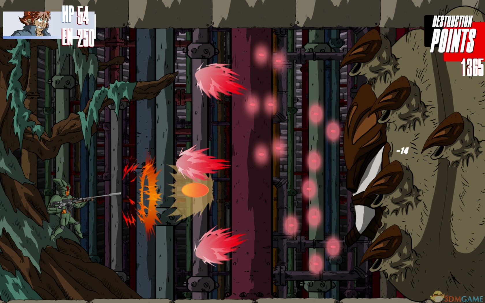 2、整个游戏的玩法可以说和魂斗罗有点类似,都是射击闯关打BOSS。