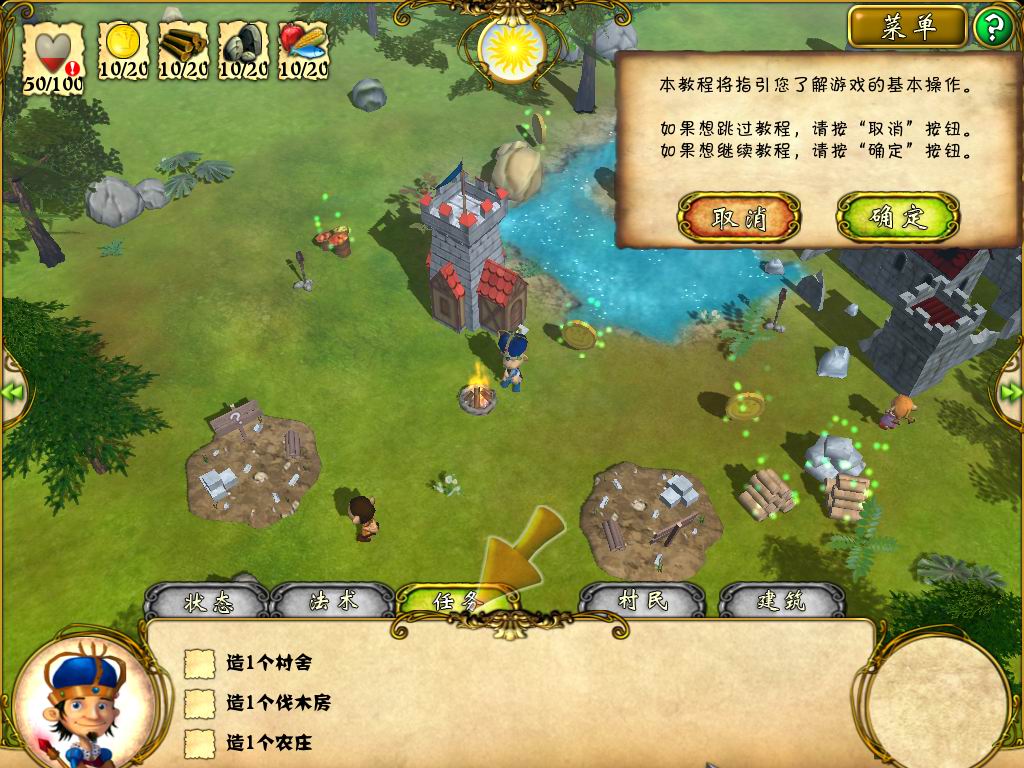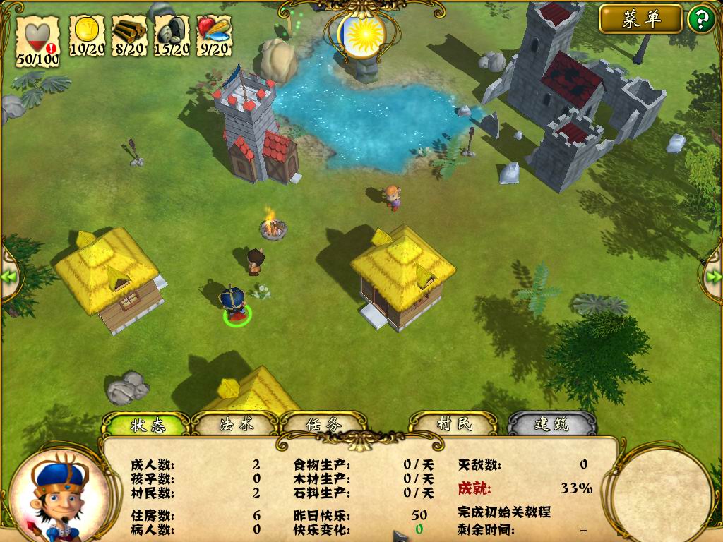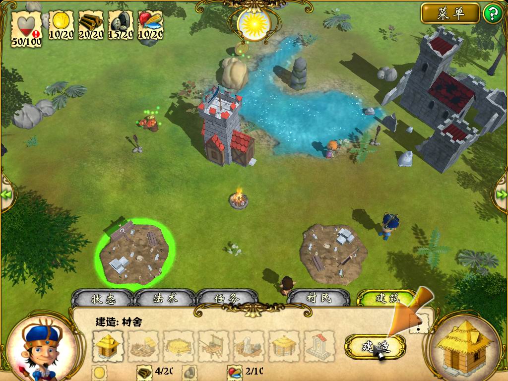 玩家将扮演国王经历各式各样的冒险,玩家在游戏里需要学习魔法咒语来抵御一些妖魔鬼怪的入侵。游戏里的建筑物为村舍、伐木房、采石场、渔村、农庄、仓库、神坛等等,这些建筑达到一定条件可以升级,玩家只有将建筑扩大才能抵御更强大的自然灾害,不然房屋会倒塌的。