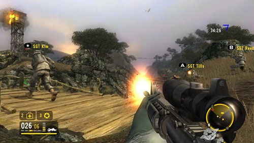 “我们没加入新武器,而是更突出美军现有武器。至于装备,游戏中加入两个新物品:‘Raven UAV’一个没有命名的飞行物,这个物品上装有摄像机,由外部团队控制。这个物品给小组长提供战场信息,在进攻埋伏和撤退路线的计划中非常有用。第二个物品是‘Blue Force Tracker’,它将飞行物信息在地图上标出。”