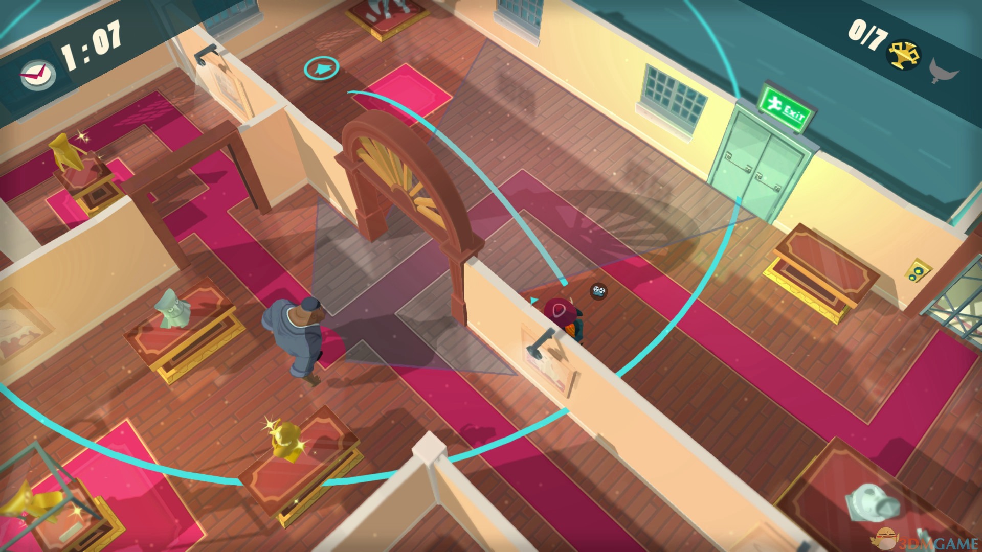 流畅的游戏流程——不同于平常的潜行类游戏需要玩家躲起来逃过守卫,因为随机警卫的设置使得你必须不断的移动。