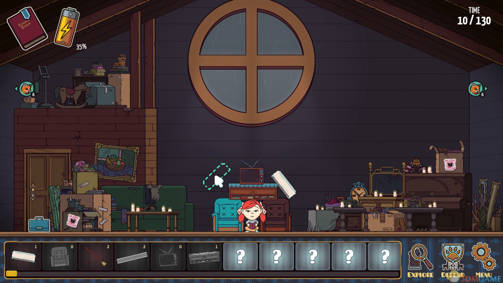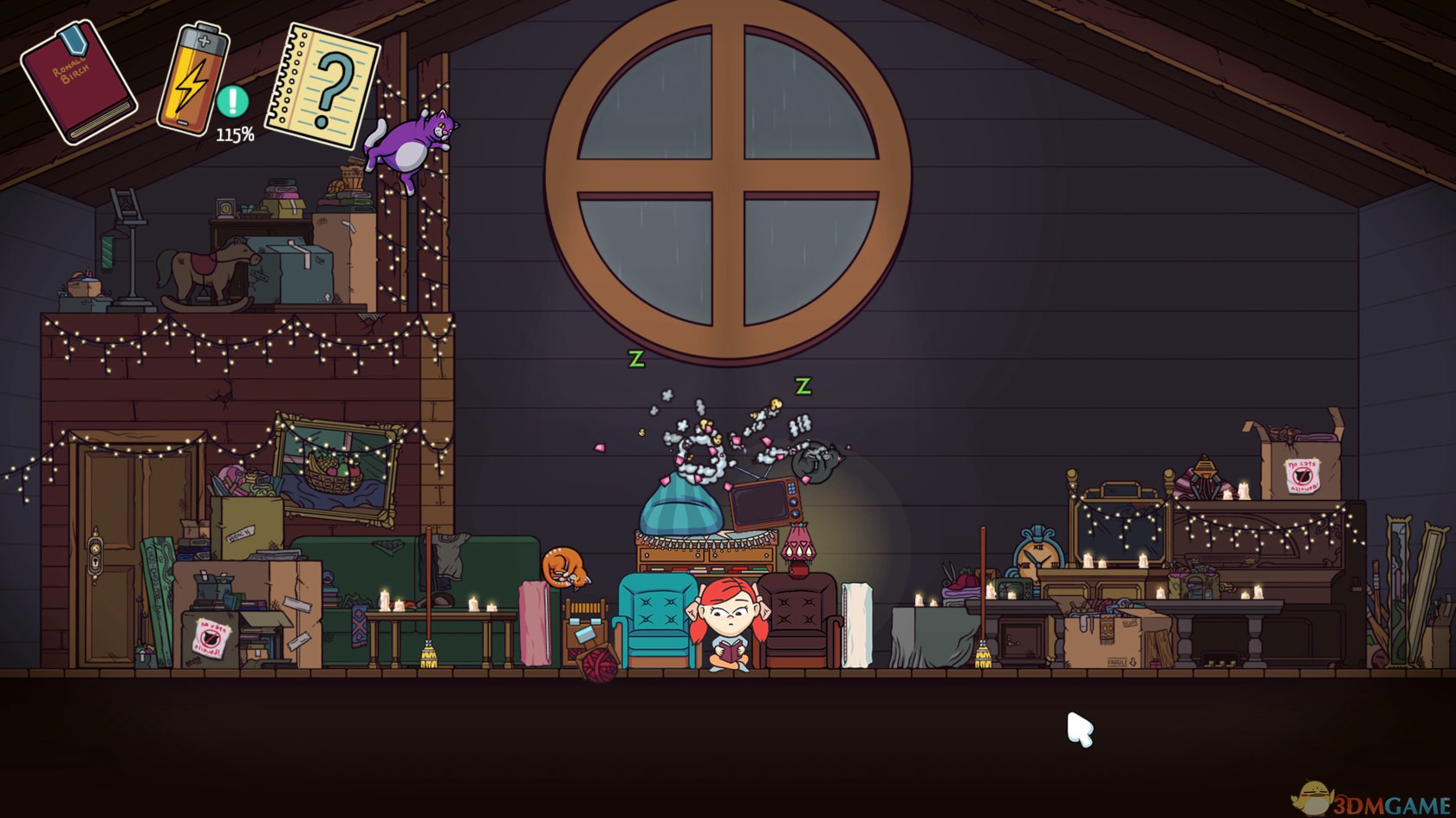 没过多久 Nia 就遭到了不少的麻烦,其原因在于屋子里面的猫咪会跑到她身上睡觉,因此她需要在屋里找一些物品来做成堡垒,来阻止猫咪的干扰。