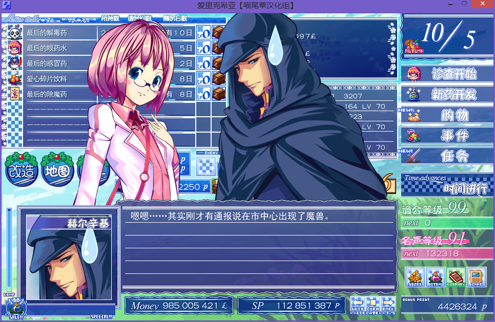 《爱里克希亚》是一款以药物合成为主题的日系模拟经营小游戏,游戏有着不错的剧情故事,该作品的玩法和同类作品比较相似,并没想表面看上去的那么简单,有着不错的丰富度,喜欢这类游戏的玩家可以下载体验一下。