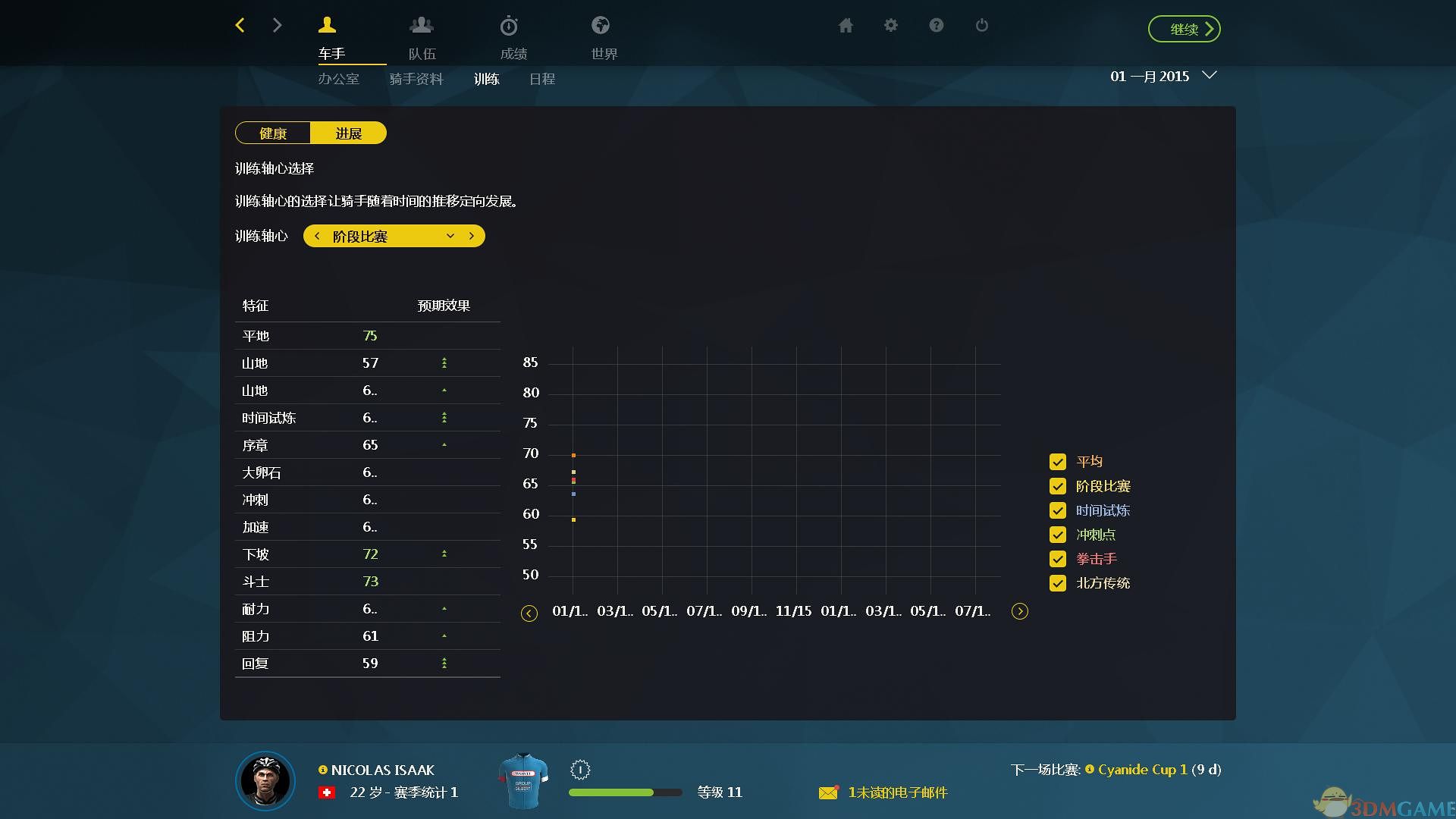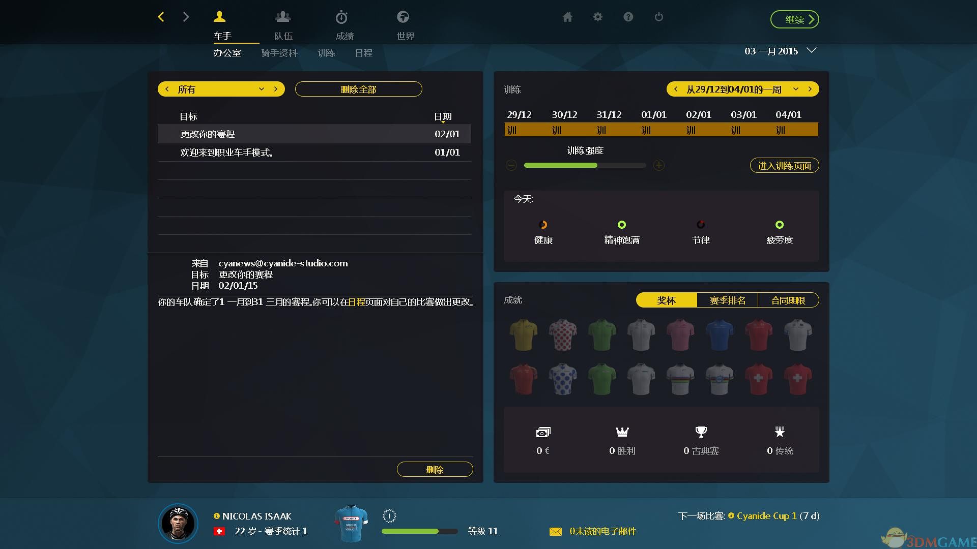 3DM汉化《职业自行车队经理2015》是由Cyanide Studio制作的环法自行车赛官方游戏作品。