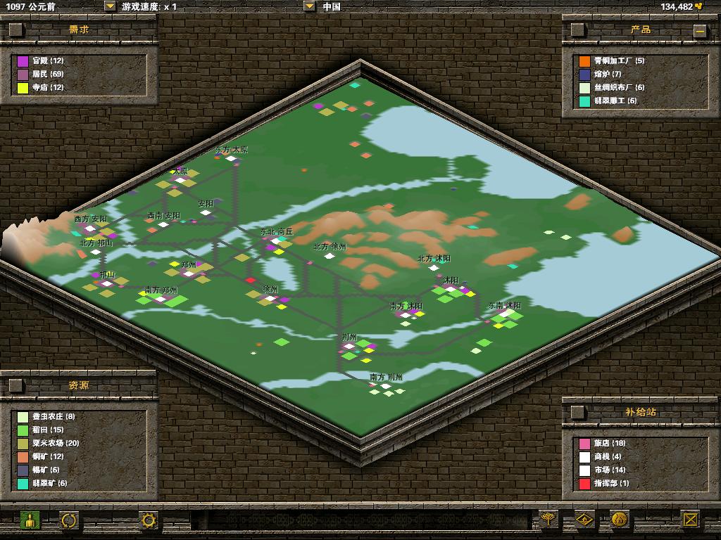 稍有一点经济知识的人都知道,随着人类科技文明的发展,会产生大量的新产品,也会出现大量的物质需求。开发者在设计关卡任务的时候,兼顾了简单和高难度两种游戏方式。总共有18个剧情章节,包括了个时期的任务、多个商业集团、许多贸易地区,游戏难度取决于市场的大小和竞争对手的多寡。在最简单任务中玩家将没有任何竞争对手,只需要向人民提供足够的小麦和鱼,让他们有衣服御寒,有陶瓷制品用于装饰居所,于是人民就会很愉快地迅速繁衍后代。人口数量的增加,就会改变供求关系,玩家最欢迎的自然是供不应求的局面,但是前提是有足够的商品出售给消费者。尤其是当玩家势力范围之外的商品需求出现时,玩家不得不开辟更多的贸易路线,其中也包括穿越强盗出没的地区,到达商品供应丰富的大陆,建立自己的供应基地和区间贸易线路。因此游戏中不可避免的会出现一些战争场面,不过很可惜,所有的战争过程都是由系统模拟完成的,玩家根本就不能进行操作。供求关系永远的是辩证对立的,当这样的供应体系初步建立时,往往又会出现供过于求的现象,因为有时候很难找到新的商品需求。玩家既要不停地扩张自己的商业势力范围,又要雇用更多的特殊技术人员来开发新的产品技术,比如当出现一种新产品的需求时,要组织力量寻找必需的原料来满足产品的生产。解决这类问题,以及其他接踵而来的难题,正是《贸易帝国》这个游戏的宗旨。