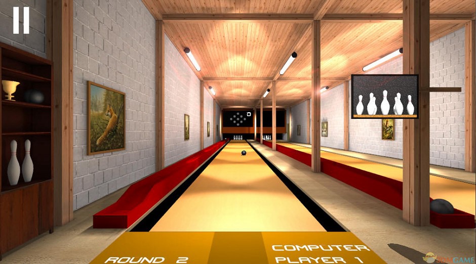 经典的九柱保龄球玩法,使用保龄球击倒九个球瓶