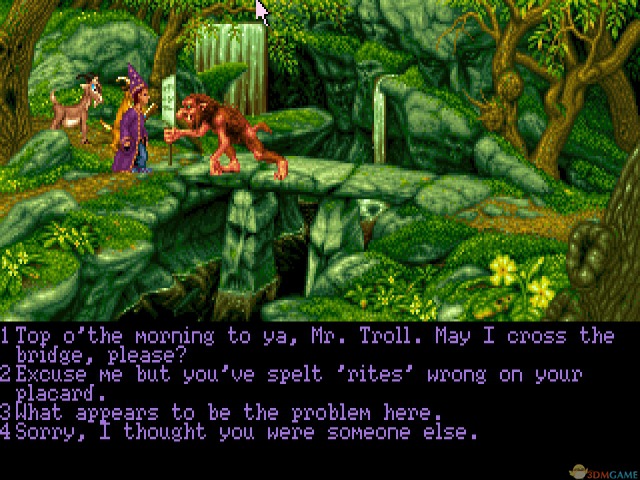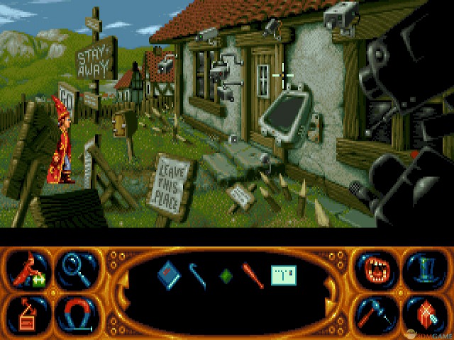 在解谜游戏中,魔法师西蒙系列是非常经典的一个系列,本作《魔法师西蒙》则是该系列的开山之作。由于游戏发售较早,画面什么已经不入流了,不过有趣的冒险还是值得我们重新体验下。富挑战性但不艰深的谜题、机智诙谐的对话、轻快流畅的情节。这一切使得“魔法师西蒙”成为冒险游戏迷们的必修课。在过去的20年中,“魔法师西蒙”系列游戏已经取得了数百万玩家的喜爱。由于是早期的游戏,操作没有现在的游戏方便,游戏下方给出了许多指令,如常用的谈话、使用、开门等,若要与人交谈,则先点击交谈指令,再点击所要去交谈的人物,其他指令的使用方法也相同。虽然现在的解谜游戏画面效果都很好,但要论及剧情和内容,《魔法师西蒙》也一点也不输于现在的游戏。作为一代经典,大家可以来重新回味下。
