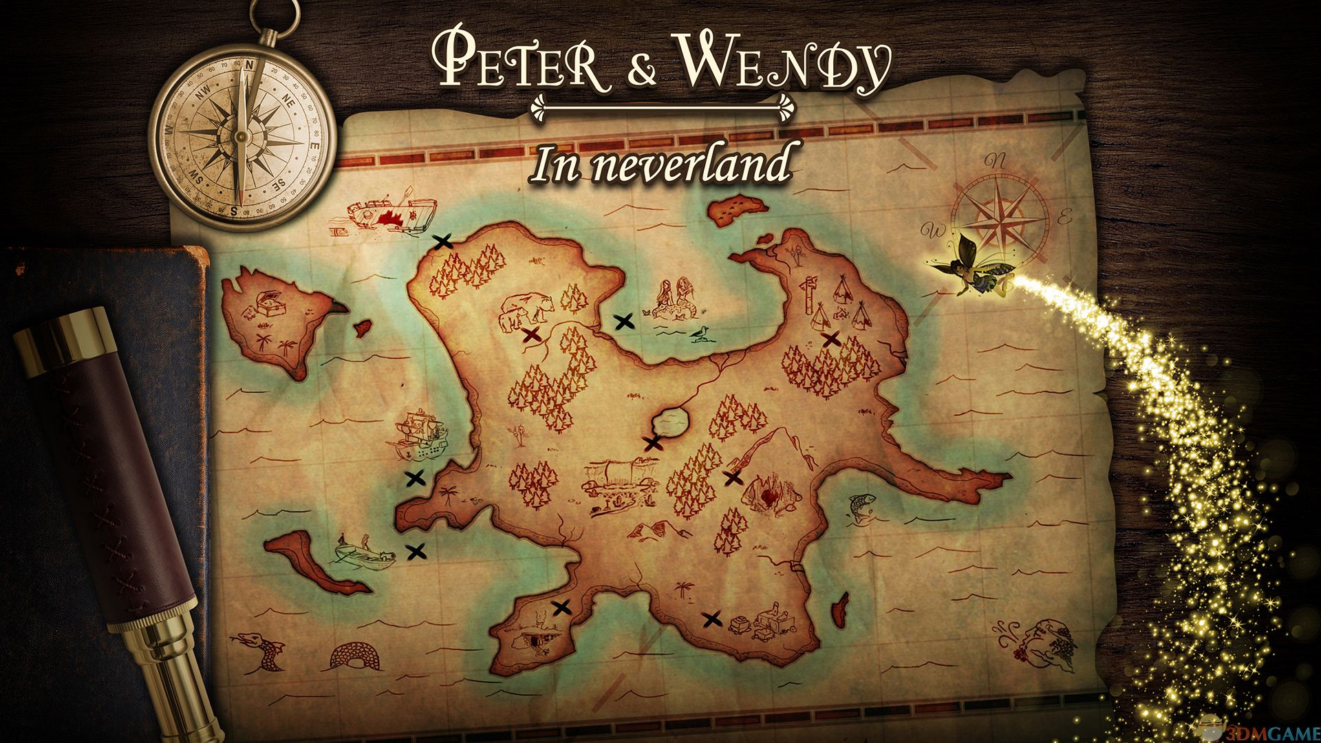 《彼得和温迪在梦幻岛》是由Microids出品的一款基于英国作家詹姆斯·巴里(J.M.Barrle)的小说《彼得·潘》(Peter Pan)改变的游戏。相信很多人都知道这部小说,讲述了一个关于永远也长不大的小王子的故事,而现在他将带领我们走向一个梦幻岛,这中间又会发生什么离奇的故事呢,让我们进入游戏中一探究竟吧,本作完美还原了小说中的几个著名场景,真实刻画了王子的特点,玩法依旧采用了经典的看图找物,我们将踏上一段奇幻之旅。