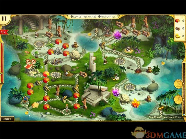 游戏中玩家的目的让荒凉的大地恢复生机,大力神和他的妻子将会帮助你完成任务,你将指挥工人们收集各种资源,一步步开辟通往下一关卡的道路。在游戏过程