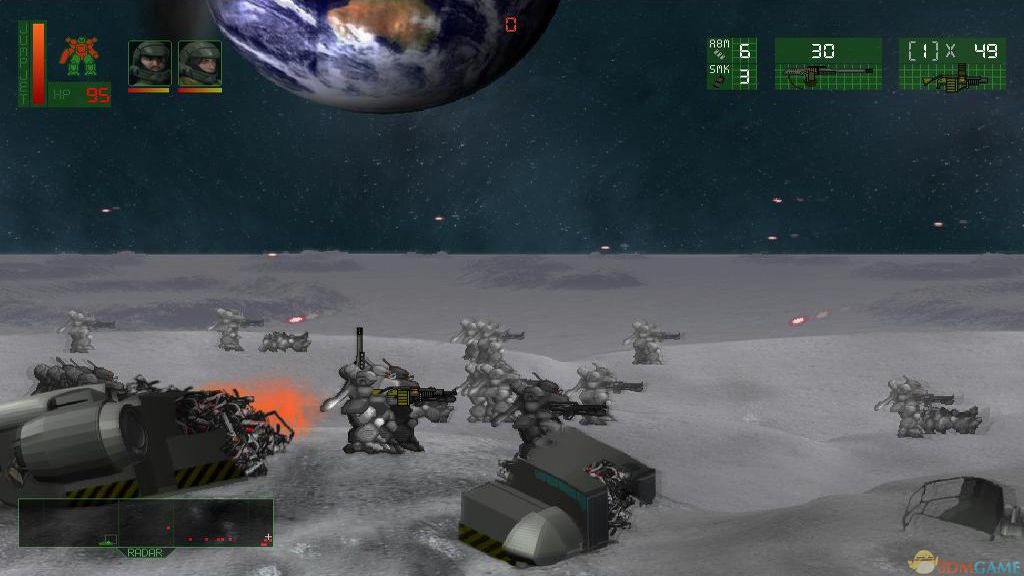 《战斗装甲师》是一款2D横版过关射击游戏。在游戏中你可以控制一个师的装甲机器人,战场规模非常庞大,从地球一直到火星,游戏节奏紧张快速,配合大气的音乐,以2D画面呈现出宇宙大战的恢弘气氛。
