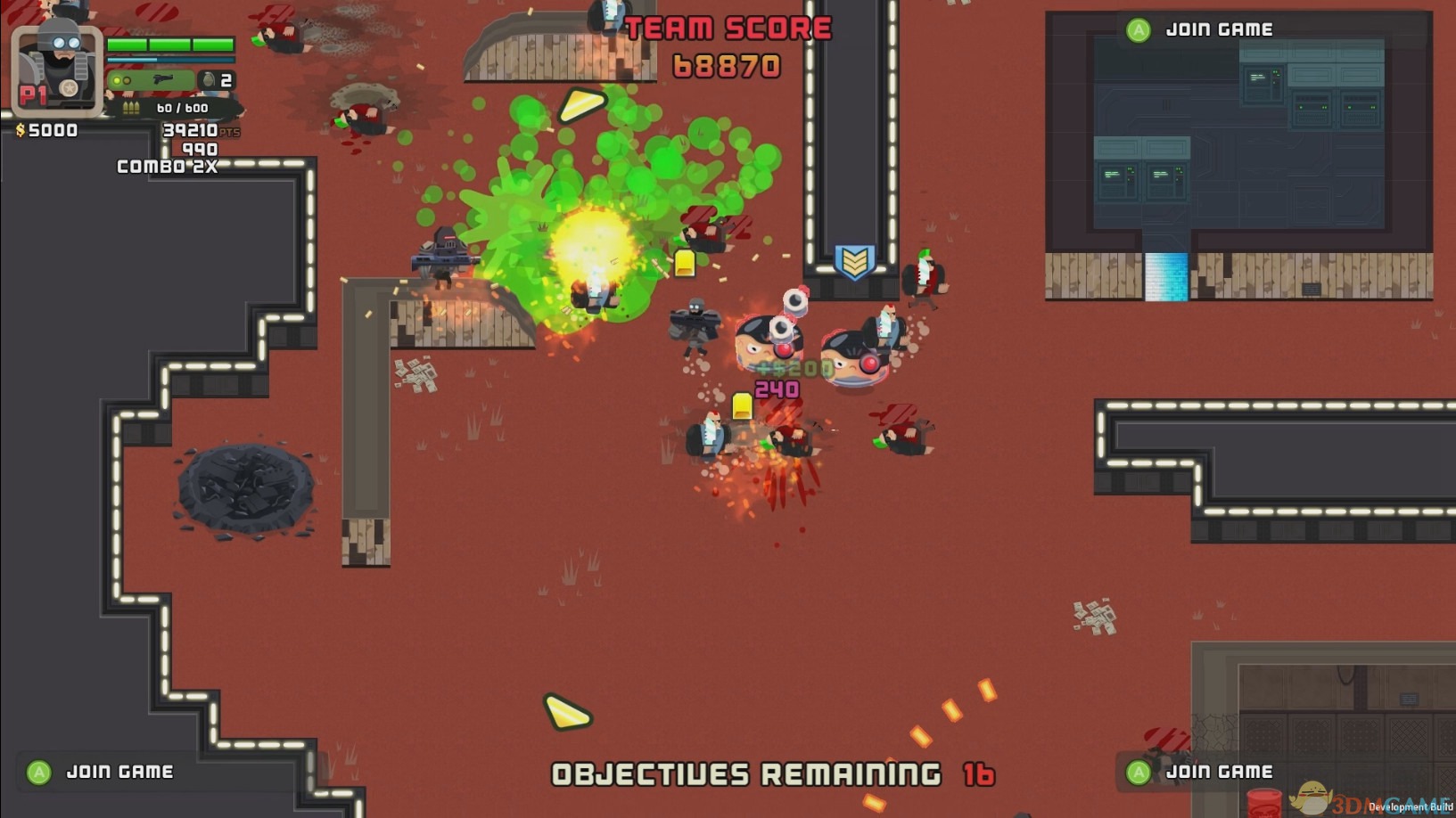 探戈嘉年华一款2D动作射击游戏,支持单人乃至4人合作闯关模式,采用80年代动作电影的风格,游戏的两点不在于拥有好看的画面而是胜在玩法上,游戏中拥有许多的团队合作挑战项目,很考验相互间的配合。