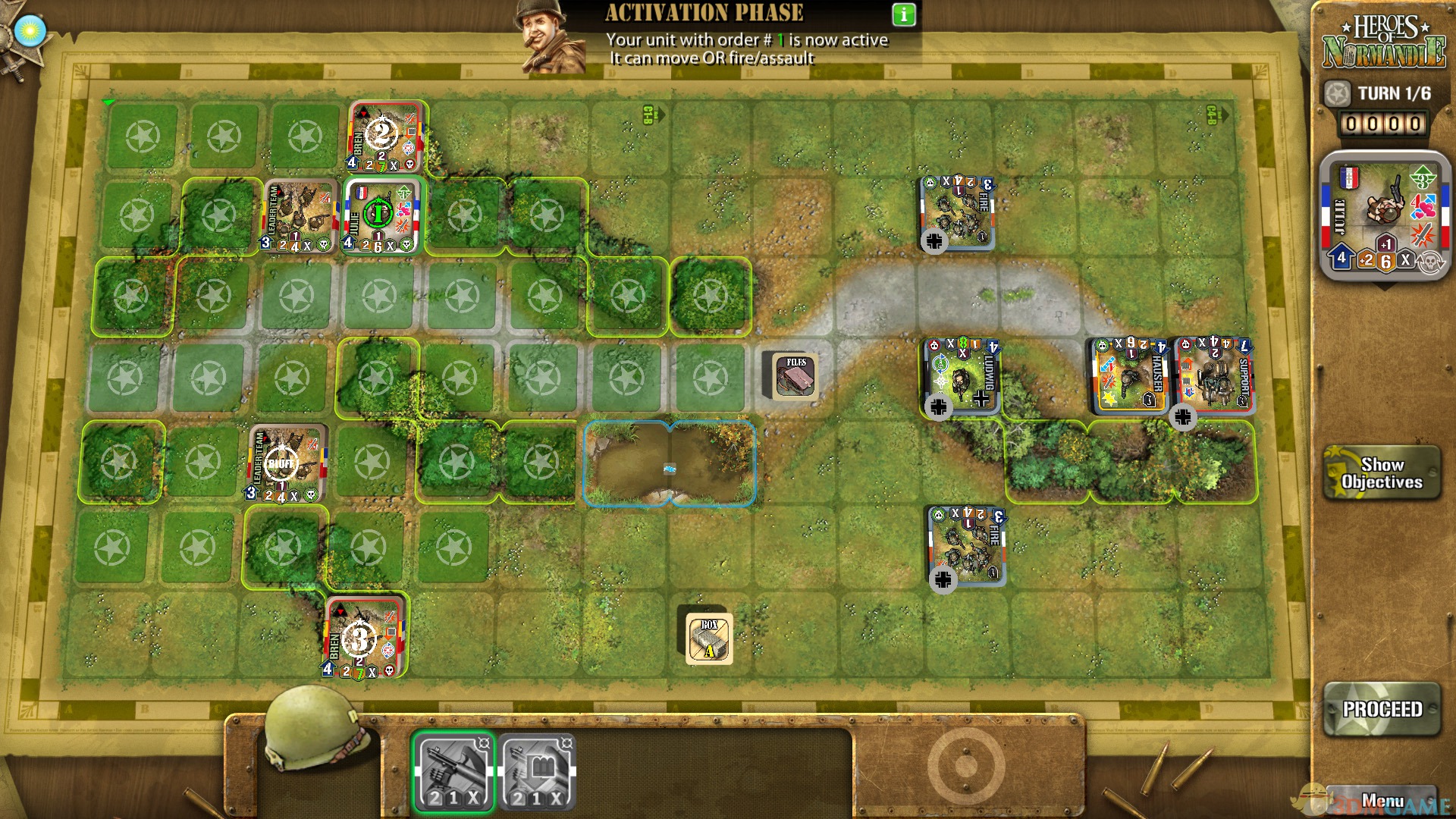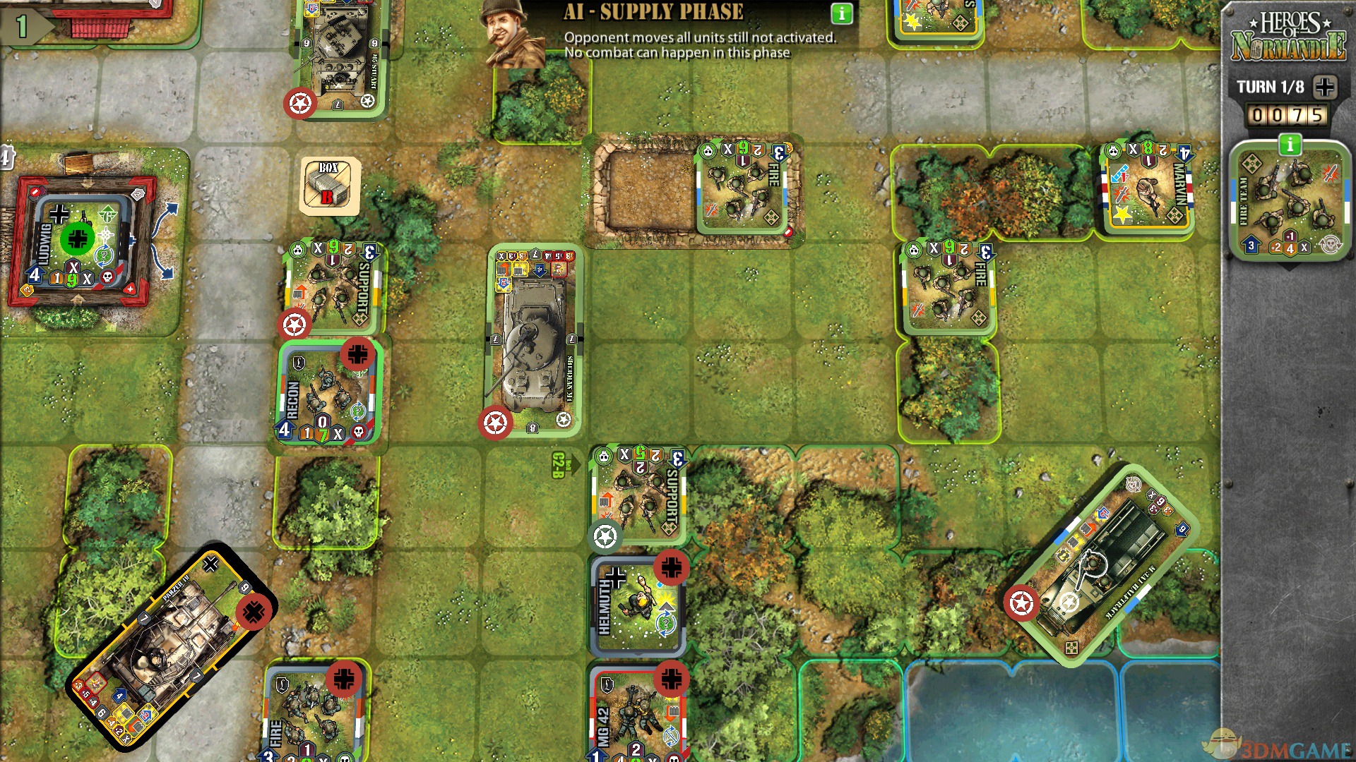 游戏本身是一款纯正风味的桌游,游戏以 3V3 的模式作为基础,玩家可选择三个美军去对抗三个德军。作为军事游戏,游戏的制作水准颇高,战斗单元中的坦克看起来有模有样,作战产生的冲击感也有真实体现,配合上玩家的头脑风暴,相信可以满足不少玩家所期待的模拟战争需求。