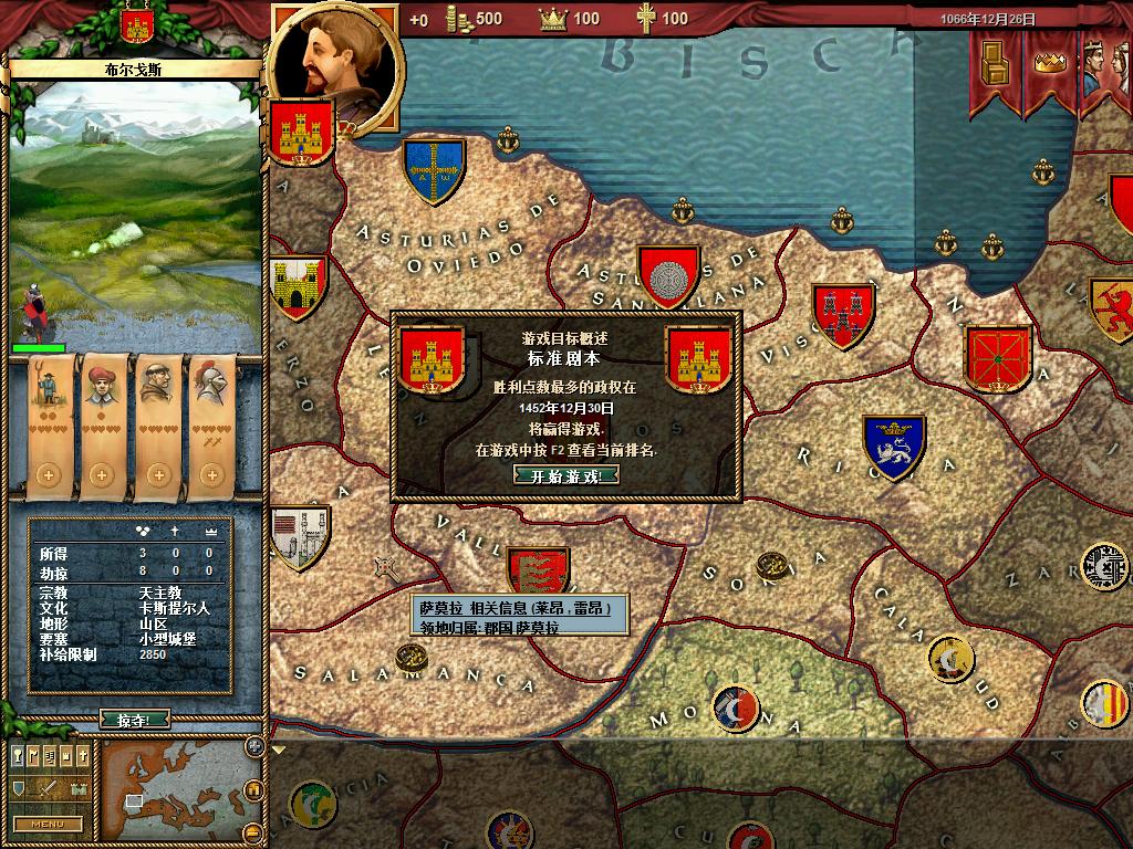 玩家将扮演公元1066到1453年间的某个王朝的君主,将自己的国家建设成中世纪欧洲的第一强国。你要做的是积累财富、提高国家的知名度与国库收入,建造大教堂和城堡,指挥你的臣民,惩罚叛徒,订立法律、设立税率,并且周旋于上百位大臣与贵族之间。
