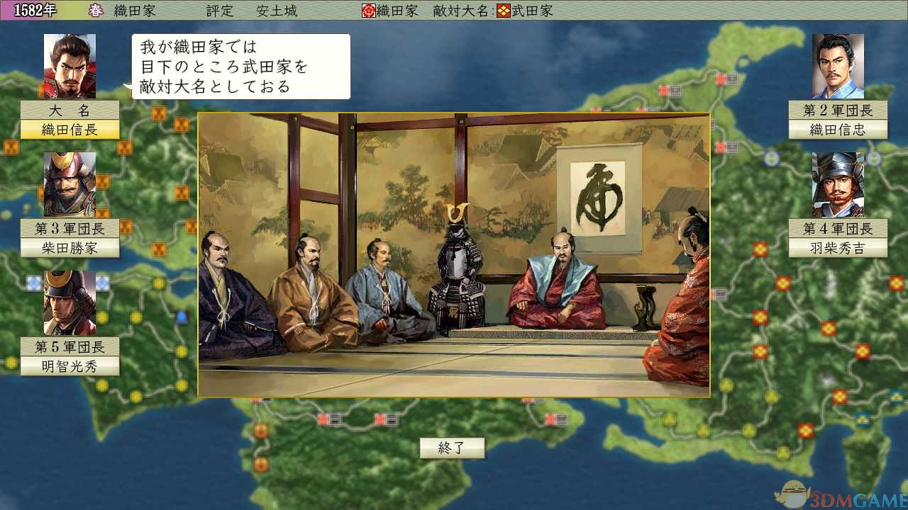 4、历史上的织田信长并未死在沙场,而是死在部下的手中。要想知道这段历史,可在游戏开始时将给出的三个年代各选一遍,但不做任何操作就放弃,这时会听到一声声响,再开始新的游戏时就出现第四个年代,本能寺之变(1582年)。另一种方法是:选择“信长的诞生”这个年代然后取消,由此重复6遍,然后第七次选择时会出现本能寺之变(1582年)。