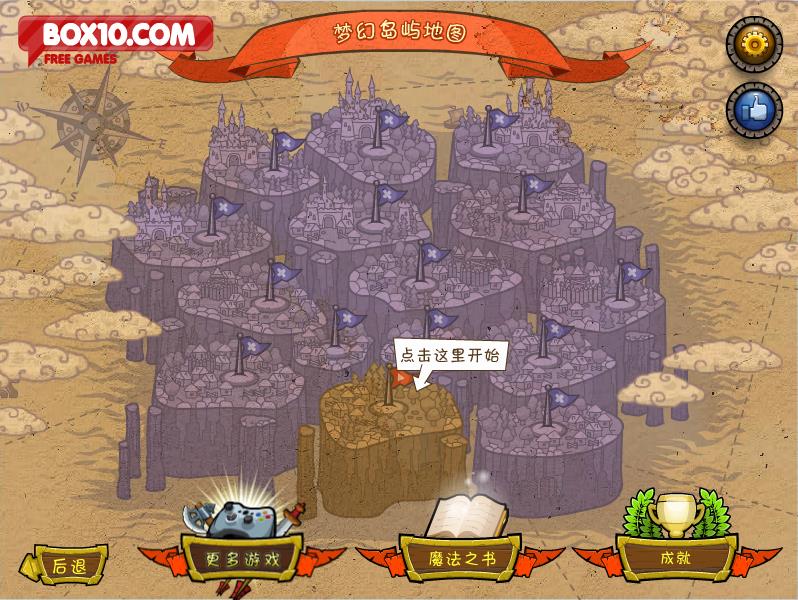 提示,在地图界面点击[魔法之书]进入升级菜单,可升级所有的特殊技能和防御塔。