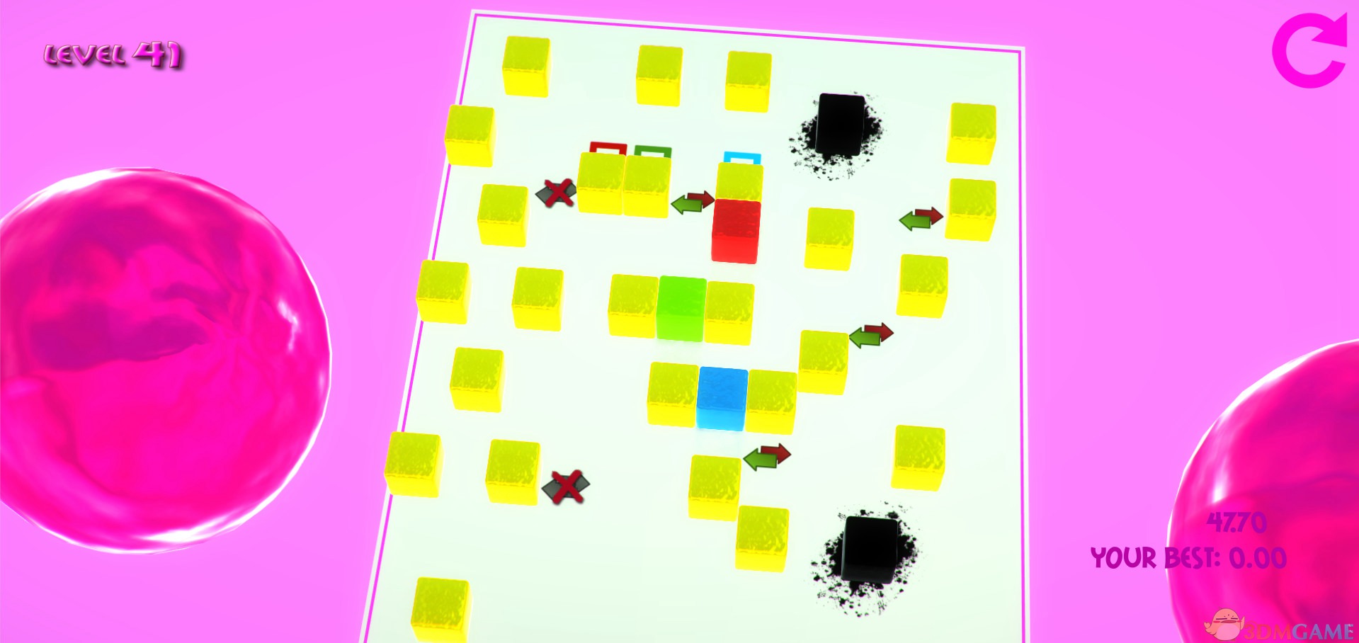 2、推动各个立方体到达关卡要求的位置来完成关卡。