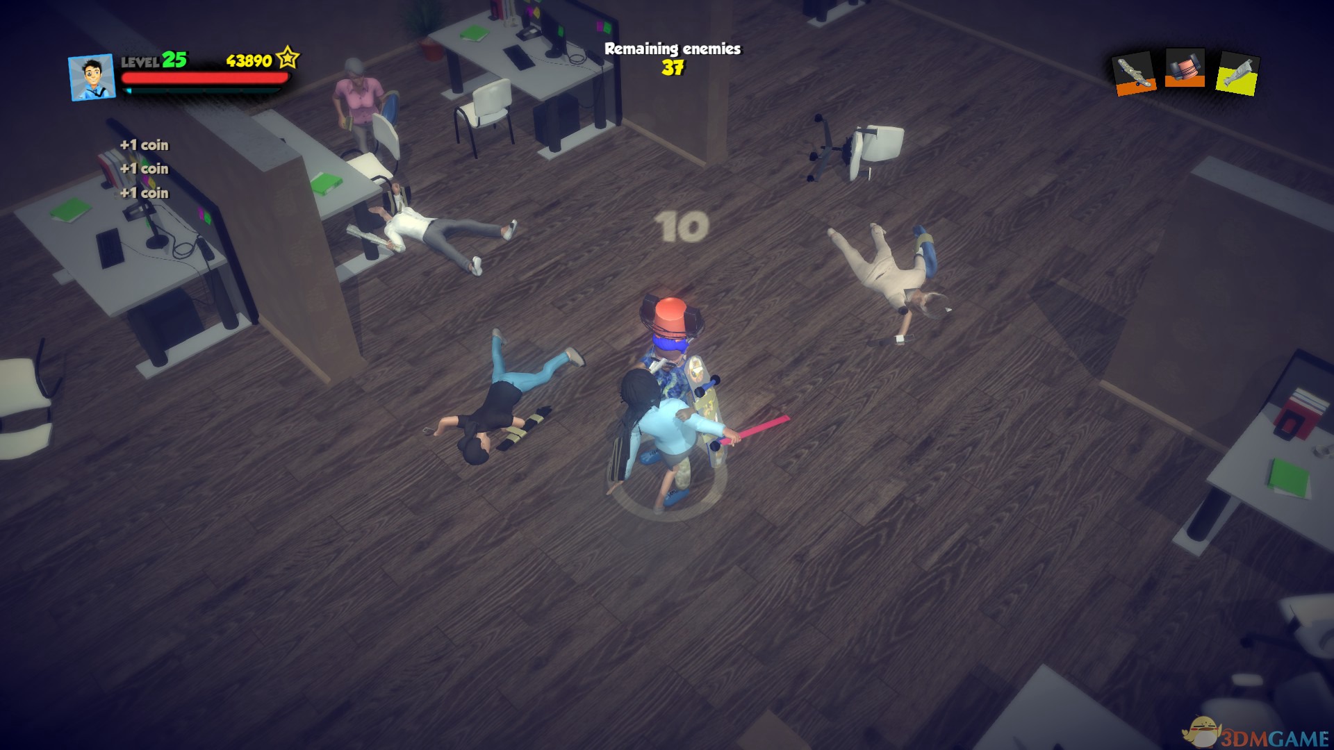 0人工作了一天累了吗?快来试试这款《办公室战争(Office Battle)》放松下吧。本作是由Black Lime Studio开发的一款动作冒险类游戏,游戏画面偏向卡通。在游戏中你要拿起一切能用的武器,来砸向你的同事。游戏内容非常搞笑。喜欢的朋友不妨下载试试。