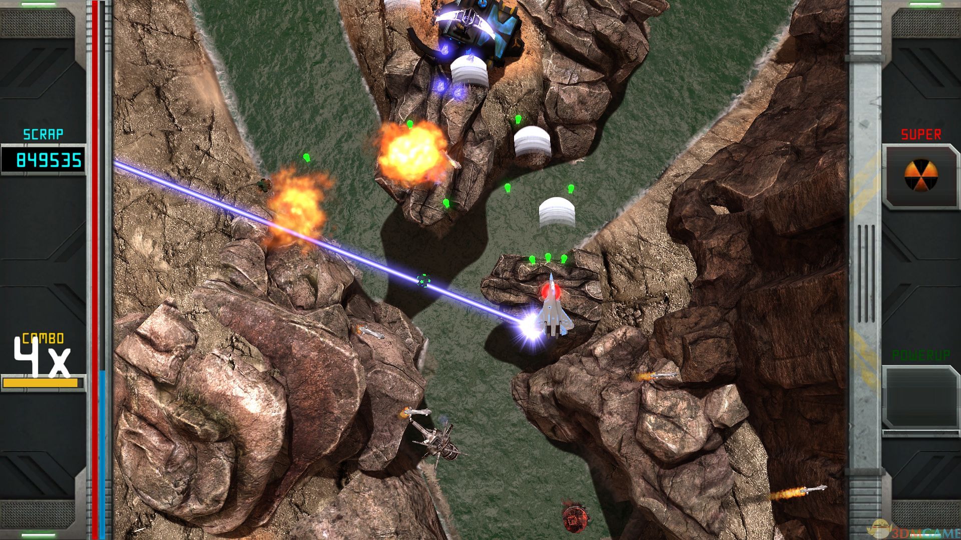 《革命王牌》中你驾驶战机的护甲并不会在第一次被击中后立刻消失,所以你可以更加集中精力消灭敌人,而并不需要太注意躲避子弹。当然,你还可以升级你的护盾和武器。