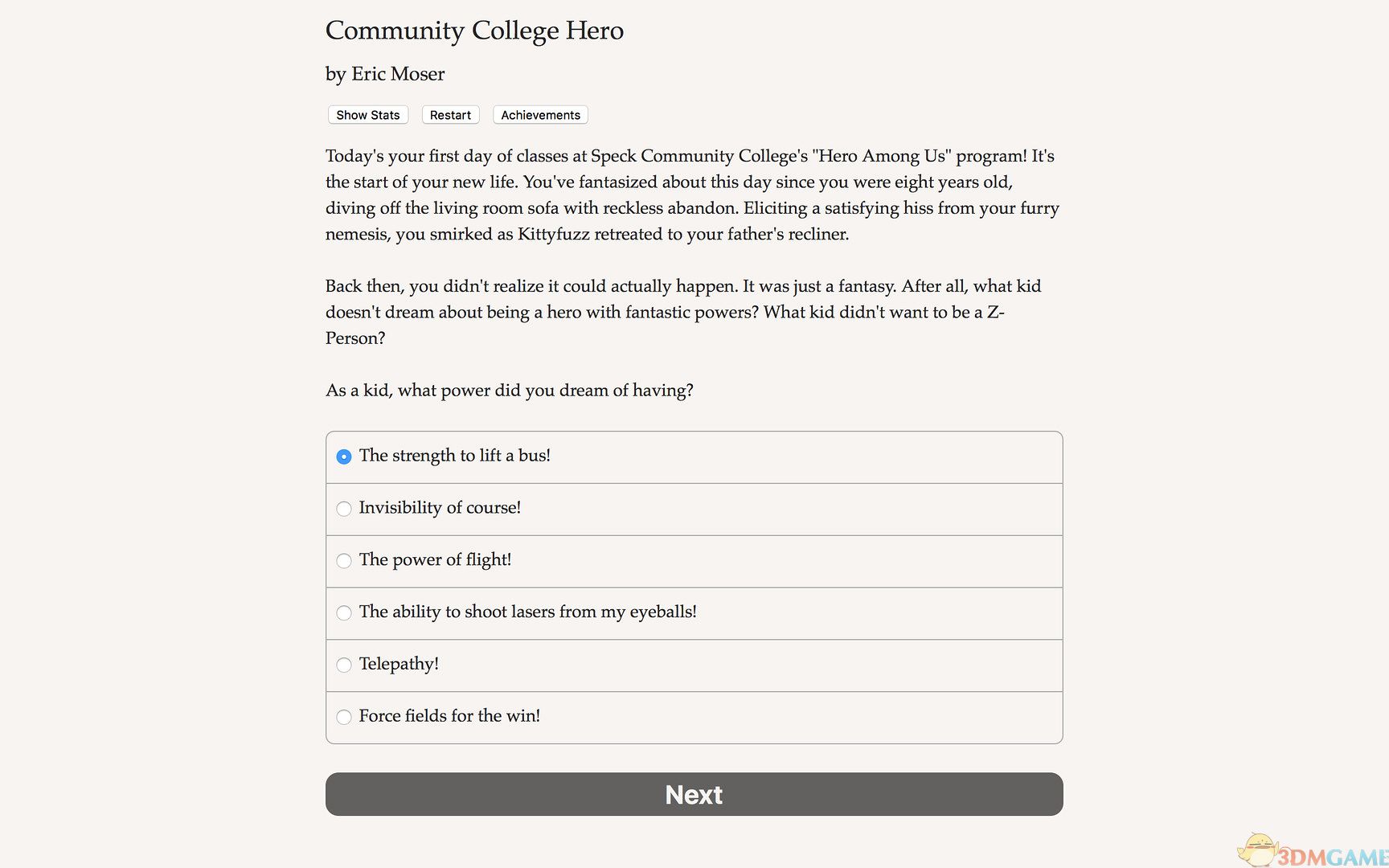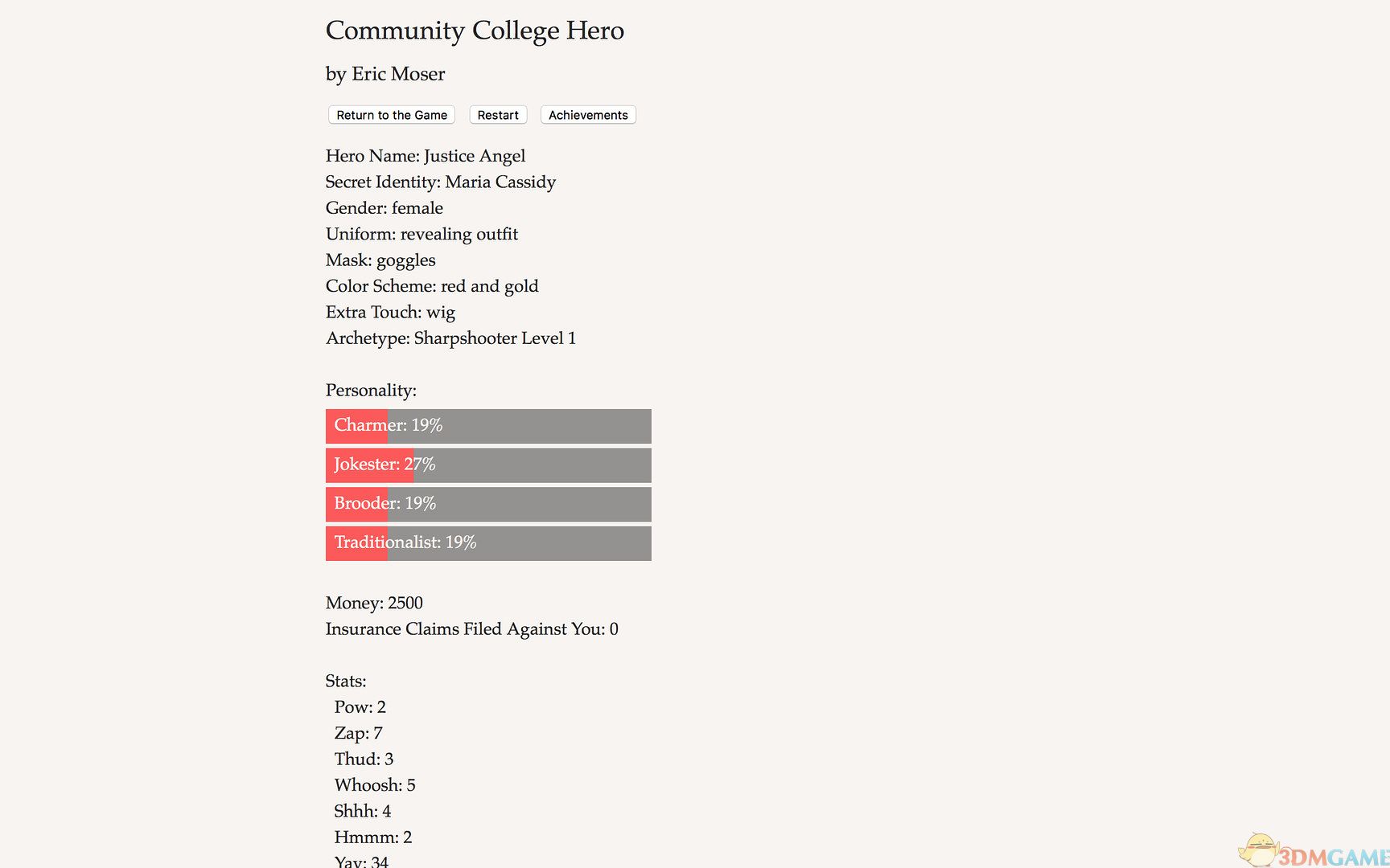 《社区学院英雄:火之试炼》是由Hosted Games制作发行的一款休闲类小游戏,游戏风格十分另类,采用纯文字方式,小编尝试过后感觉像是在填写一份表格,不过内容还算比较有趣,选项前后关联紧密,很有逻辑。与其说是一款游戏,不如说是一部经典小说,本作剧情是唯一核心,玩家们将跟随主线,体验不同的结局,赶紧加入吧。