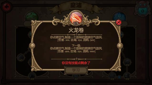 3、在关卡中杀死怪物来获的经验提升等级,在魔法书中学习更加强大的技能。