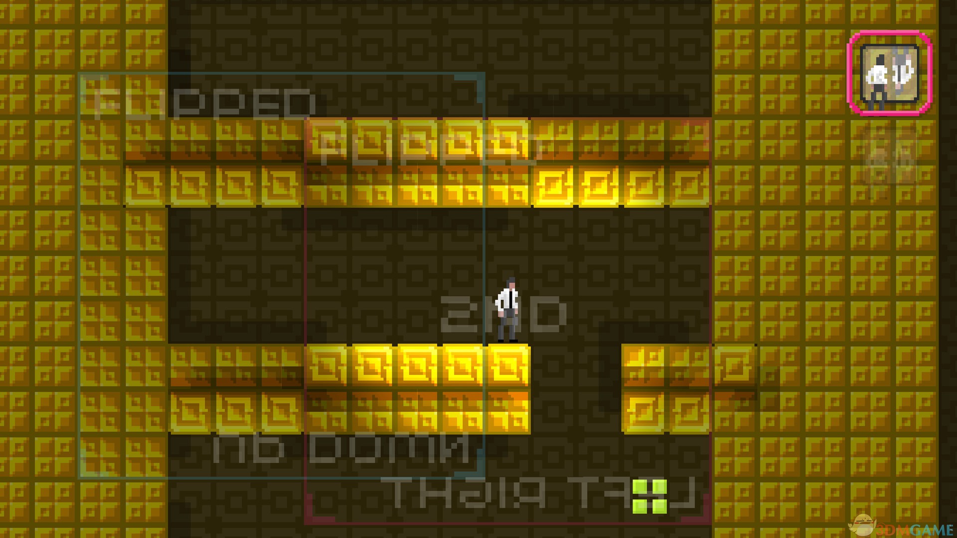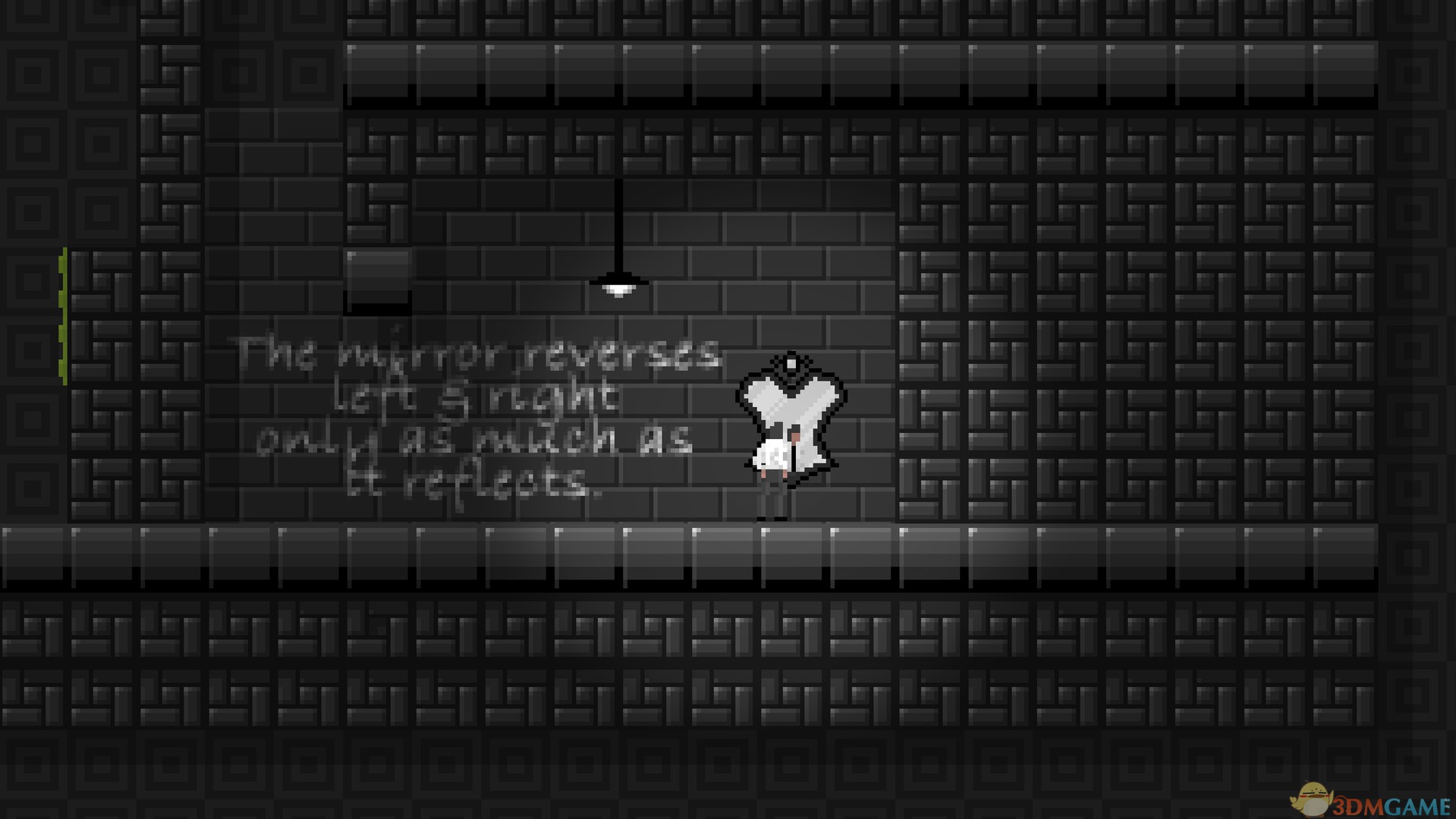 游戏中按住 M 就会显示可能出现的镜像情况,松开就会变换。在运用得当的情况下,你甚至可以通过它来杀掉敌人,因为镜像过程中,石块是会移动到位的,这样有时候会恰好杀死敌人。