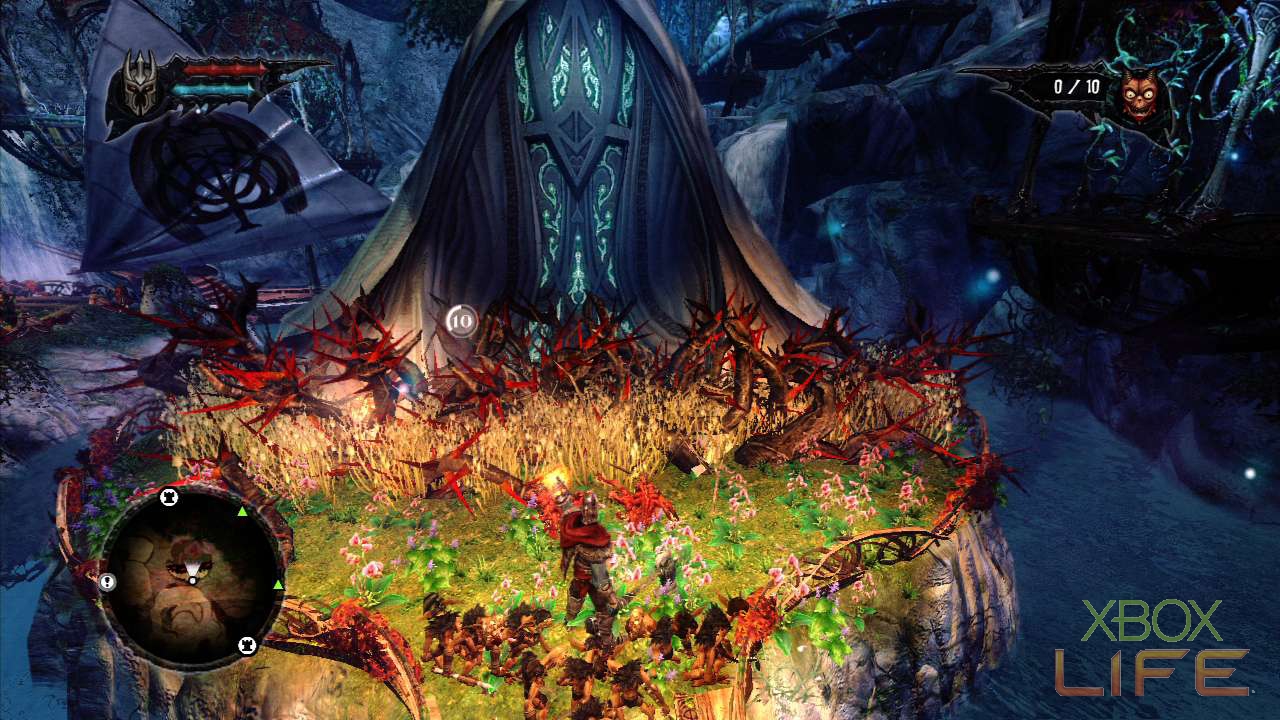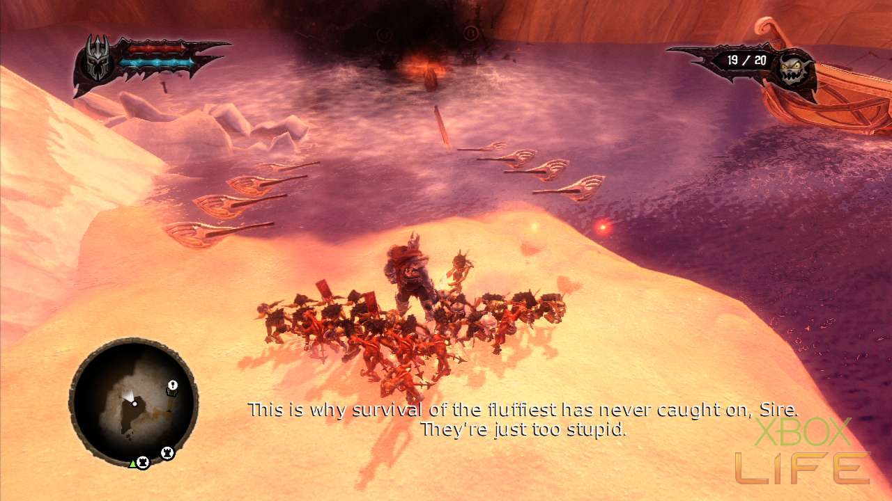 《Overlord2》最有趣的地方,就是让玩家所扮演的角色并不像一般游戏总是正义的一方,在《Overlord2》玩家则是扮演邪恶的魔王,率领一群小喽啰到处烧杀掳掠。随着等级的提升,玩家身边的小喽啰数量就会愈多、愈聪明。