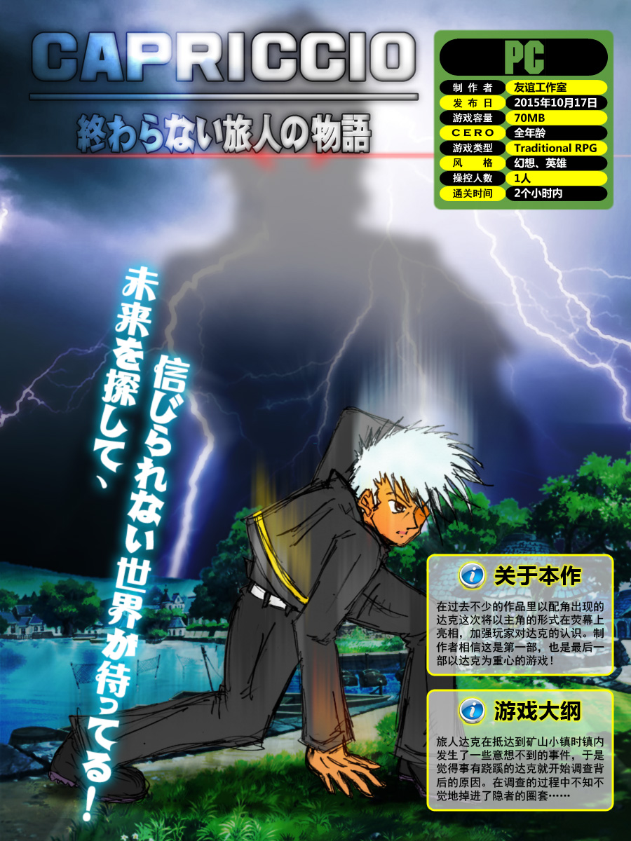《CAPRICCIO:无尽的旅人物语》国内友谊工作室和迅雷進制作发布的RPG游戏,在游戏中玩家能体验到一个奇妙的冒险之旅!