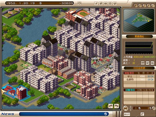 好的开始是成功的一半创业王购买土地是创业的第一步,原料的来源处会决定你将付出的运输成本,另一个要考虑的就是商品的销售对象。在《创业王》的都市中,在在着办公区、高级及一般住宅区、商业区、工业区和文教区等不同的消费族群,如果你准备销售化妆用品,就必须买下人口密度高的土地,再盖一栋外观美美的销售中心,顾客才会有较高的意愿来你的店里销费,否则就算你卖的再便宜,也很少有女性顾客愿意大它远跑到工业区去买一条口红吧!除此之外,玩家也要有注意未来生产中心或销售中心的扩展性。如果经营的成果愈来愈好,又刚好遇到旁边有土地出售,玩家就可以直接买下旁边的土地,就算一时钱不够,也要变卖现货凑钱买下来,一时的投资可以在未来省下更多的成本!当然也提供您另一种玩法,就是购地置产低买高卖,也许投资正确运气又好,一夕致富就此成为大地主!